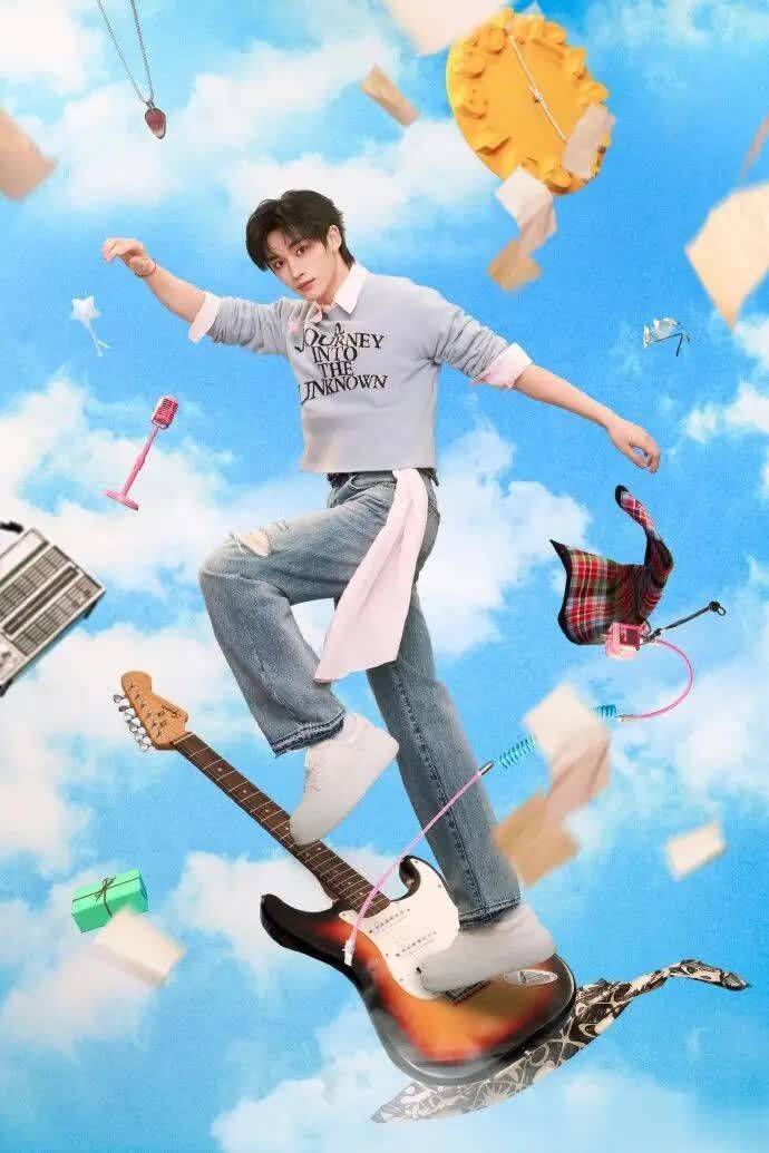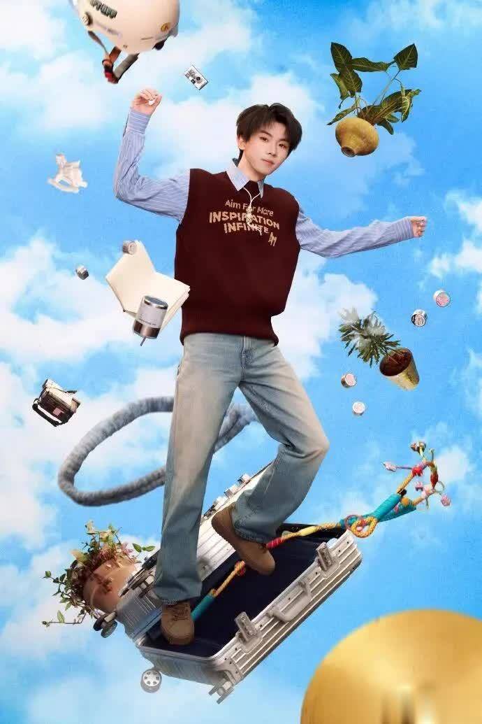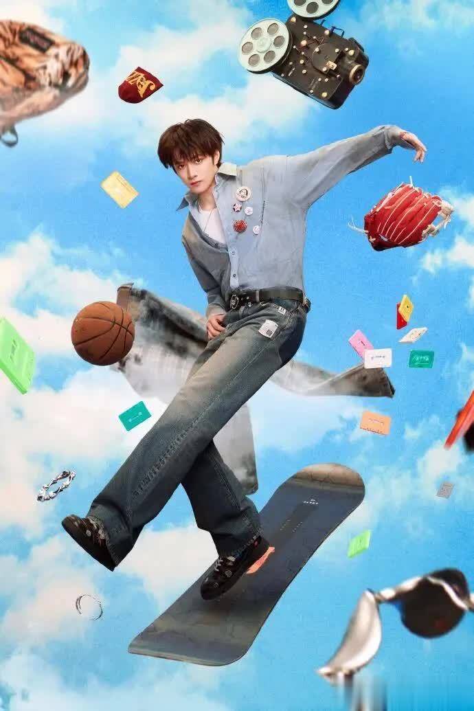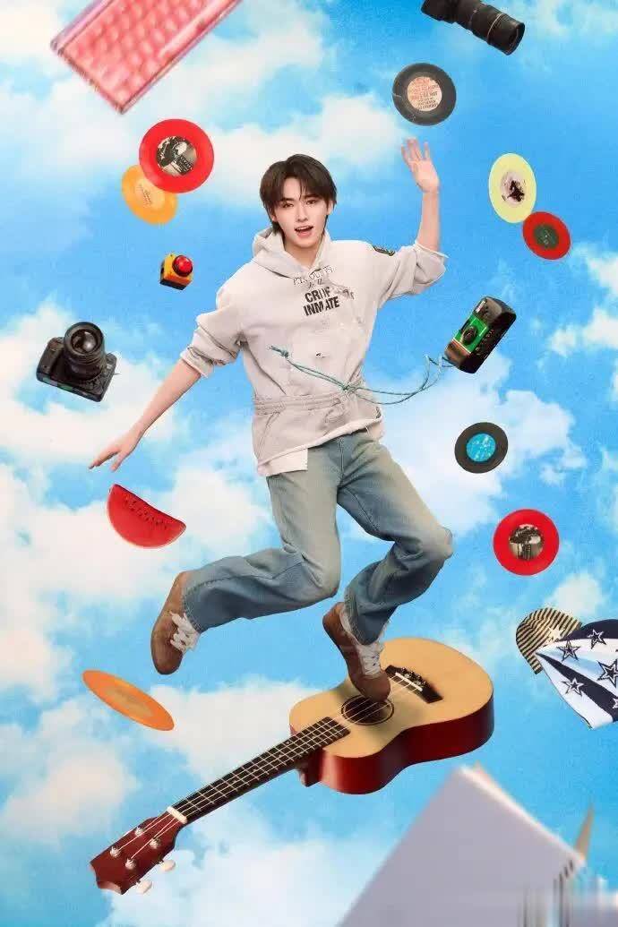 画面的创意设计,更是将 “摆脱地心引力” 的主题诠释到了极致。澄澈透亮的蓝天白云为底,少年们仿佛挣脱了重力的桎梏,在云海之上肆意舒展身姿,每一个动作都带着不被规则束缚的自由与洒脱。吉他、篮球、羽毛球拍、复古收音机、书本唱片、相机画板…… 这些充满生活气息与少年热爱的物件,随着他们的动作在空中肆意飞舞,每一个元素都藏着少年们的日常与梦想,也共同构建出一个不被世俗定义、只属于青春的自由乌托邦。
